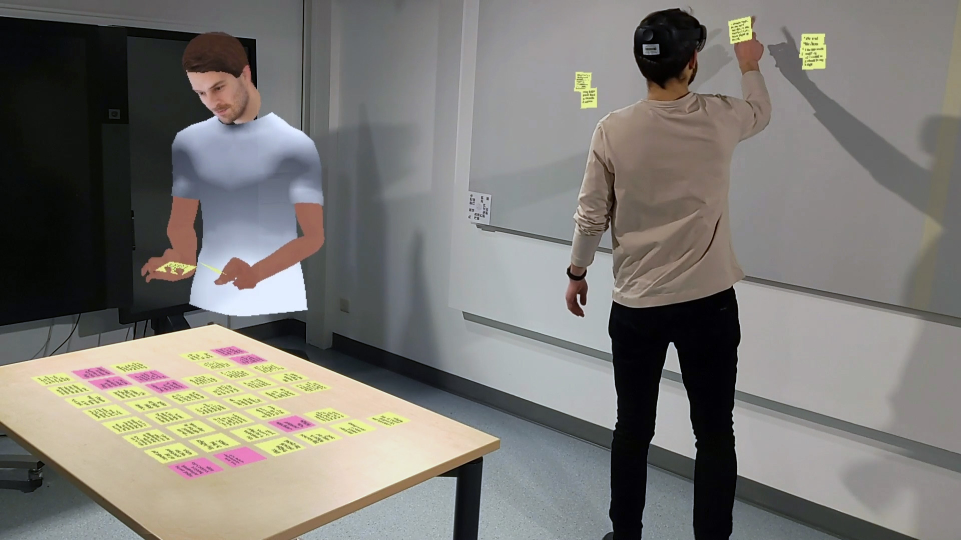 A technology that can potentially support such practices is AR. With it, designers can interact with virtual objects in the same way as with real ones, closely emulating working with physical notes. And, as tools like Spatial show, AR can enable natural remote collaboration by visualizing collaborators as virtual avatars that mimic their body and hand movements. But while this looks very promising, so far, there have been no studies that investigate what actually happens if one transforms analog work practices such as Affinity Diagramming to a digital one using AR.