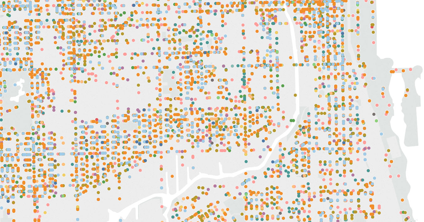 To familiarize ourselves with the data, we first visualized it using the map functions of various standard data analysis tools such as Tableau or Excel. Especially because of the representation in Excel’s 3D map, it became clear that assigning the criminal offenses to individual blocks of houses was too detailed and confusing. Simultaneously, an analysis of the data in Tableau showed that this exact geographic assignment gave the impression that all crimes take place on the street.