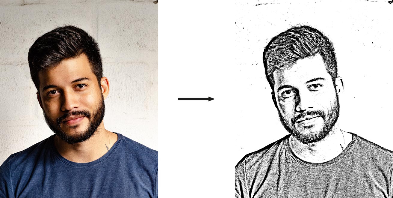 Then, I designed and implemented a drawing application for the robot. For this, I implemented a Processing application that converted any kind of photo into a silhouette vector graphic. This vector graphic was then processed again in an application written in the robot-specific programming language – deriving a set of movement commands for the robot arm.