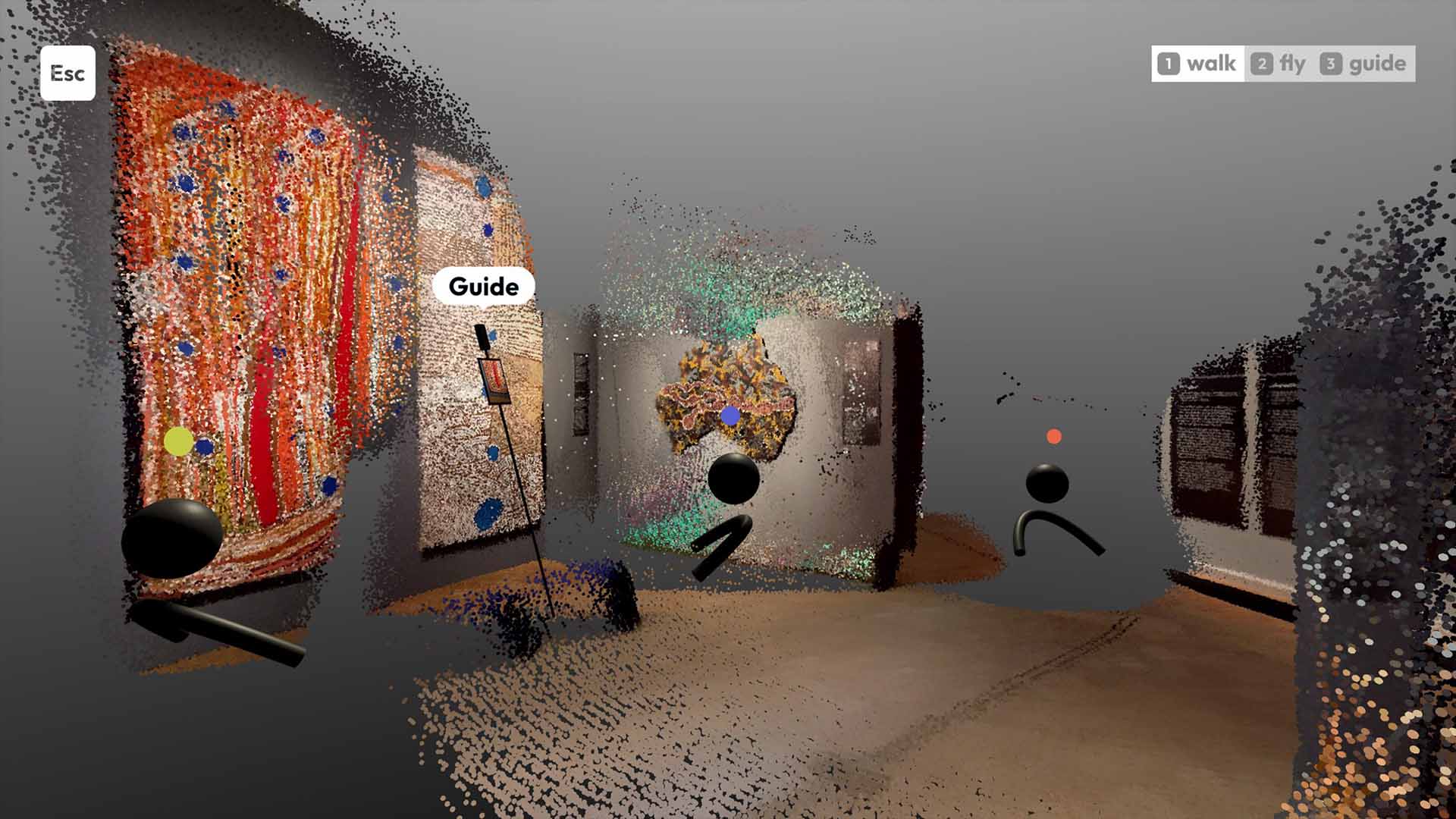 As you can see in the rundown video above, we developed various prototypes for this project that differed in the amount of agency they give to the user. In the 360 prototype, you – as a visitor – could look around freely and see where other people looked at. Yet you were still attached to the guide’s position as they dragged you through the exhibition, making it impossible to watch objects that may be of more interest to you.